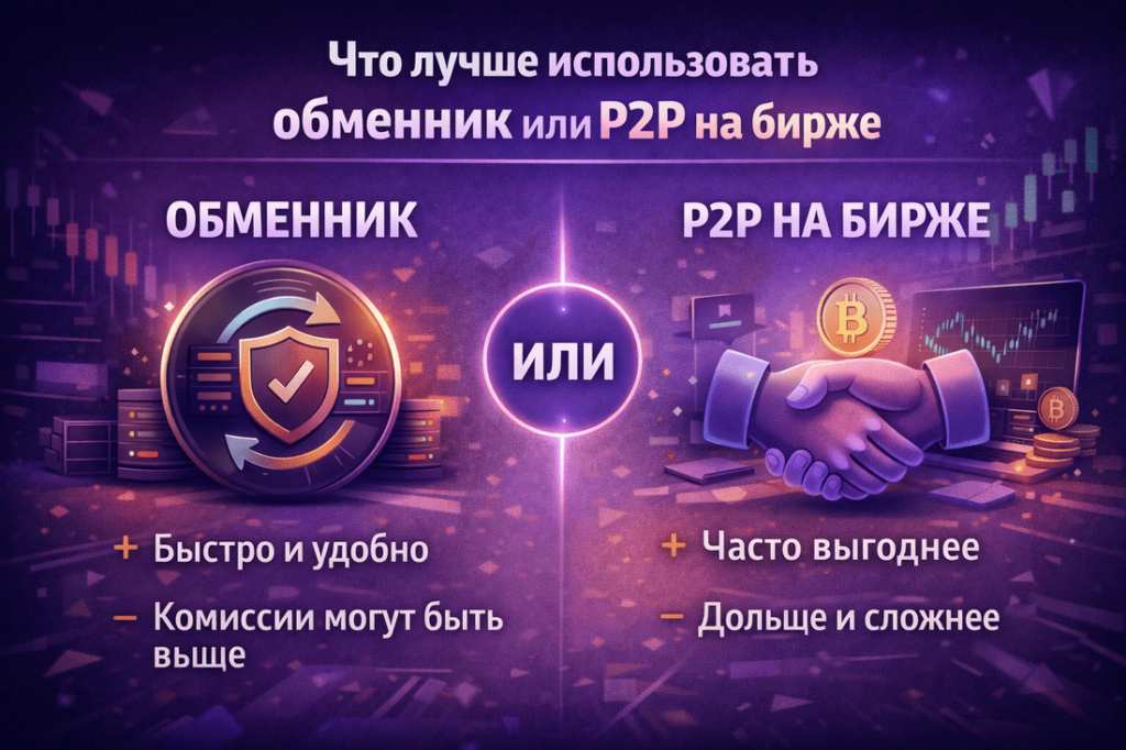 Обменник – это скорость и простота. P2P – чаще выгоднее, но требует больше времени.