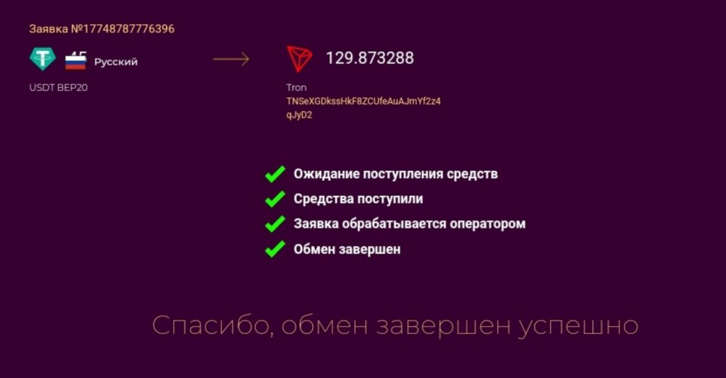 Как проверить статус обмена и дождаться средств