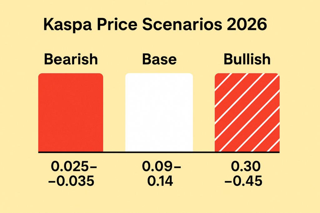 | Базовый | $0.09 – $0.14 | Устойчивый рост сети Kaspa, восстановление спроса, умеренный альтсезон. |